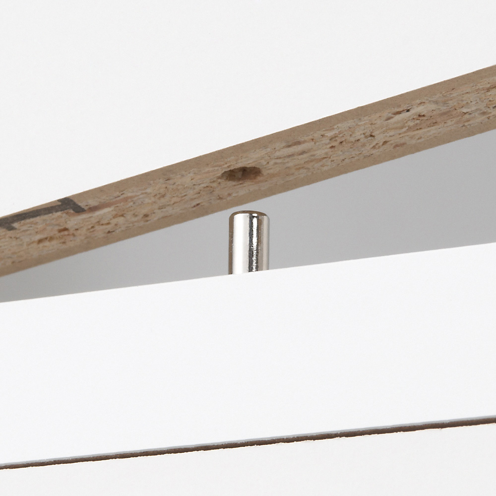 棚板はダボでしっかりと支えます。 可動棚板は3cmピッチ3段階で可動できます。