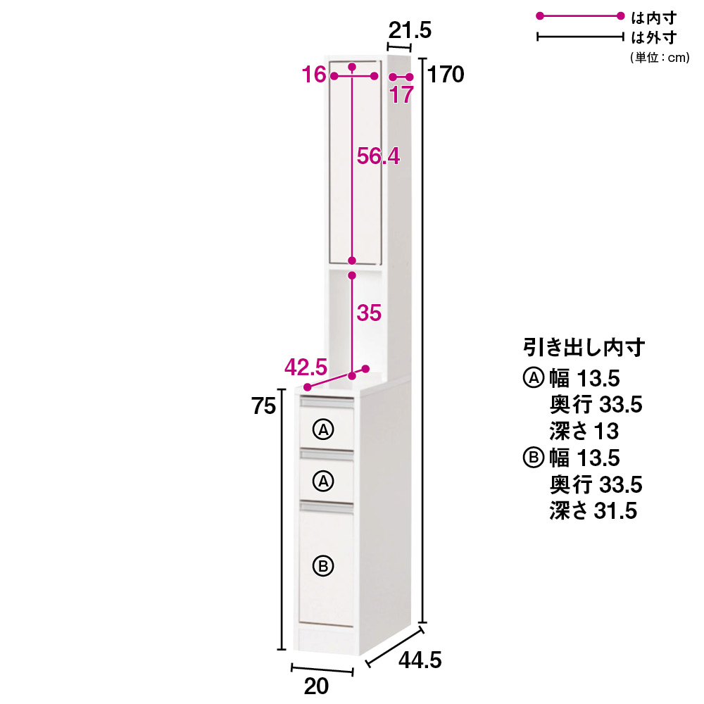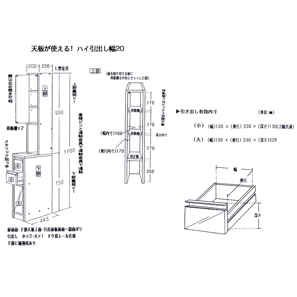 ■幅20奥行44.5高さ170引き出し奥行33.5cm・重量約23kg