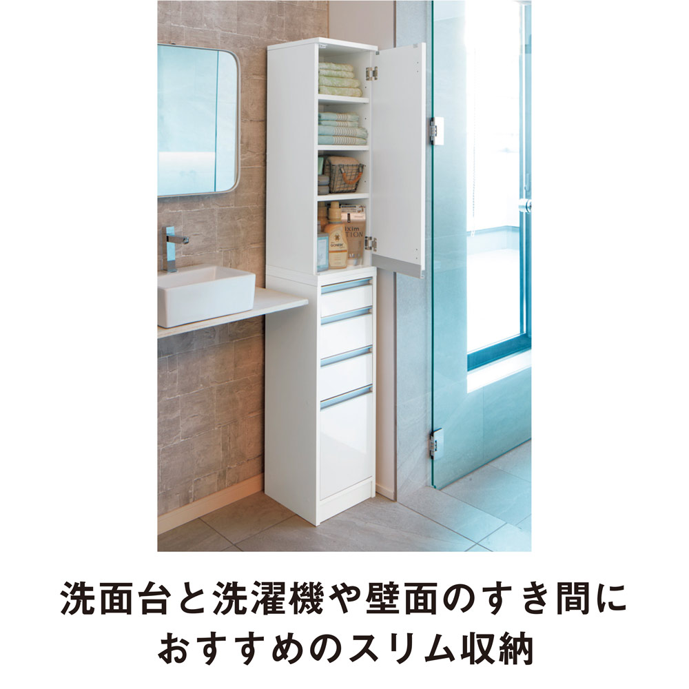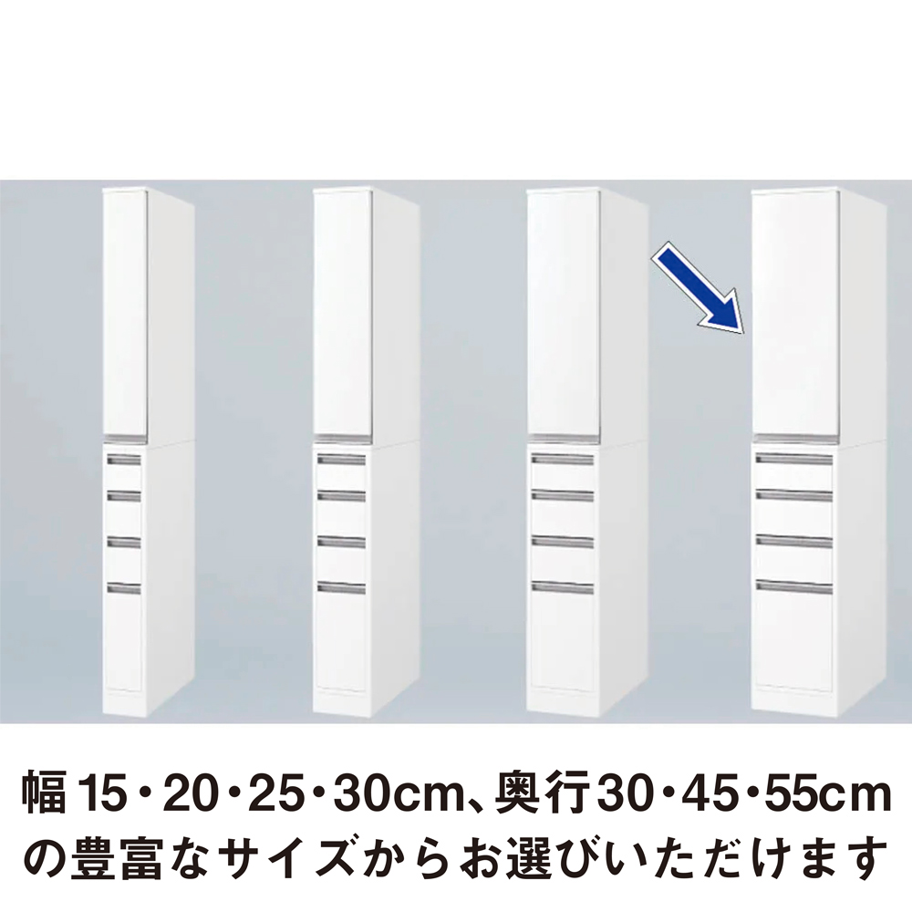 ●幅15・20・25・30cm、奥行30・45・55cmの豊富なサイズからお選びいただけるすき間家具です。●洗面台と洗濯機のすき間や洗面台と壁面のすき間におすすめのスリム収納です。