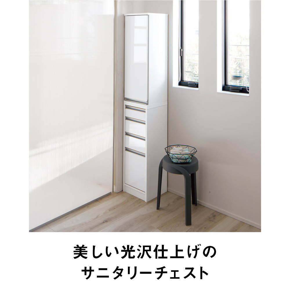 サイズが豊富な光沢すき間収納庫 幅15cm・奥行45cm スライド可動棚タイプ 洗面所収納 隙間収納 トイレ 洗面所 ランドリー収納 587516