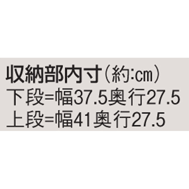 上段に3cmピッチ3段階可動棚板2枚付き。