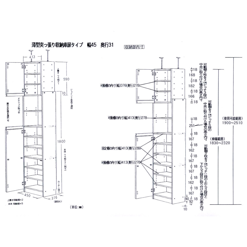 ■突っ張り対応天井高さ189~251cm
