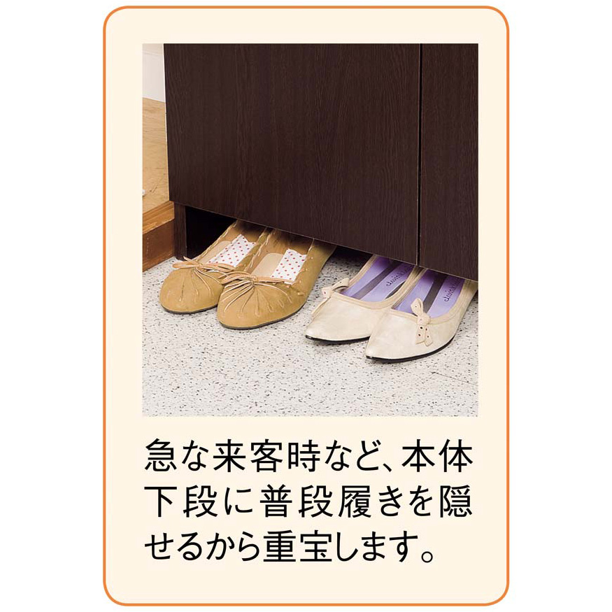 ◎靴箱下部には空間があるので日常使いの靴や雨の日に履いた靴の一時置きをしたり、来客時にもさっと隠せて便利です。