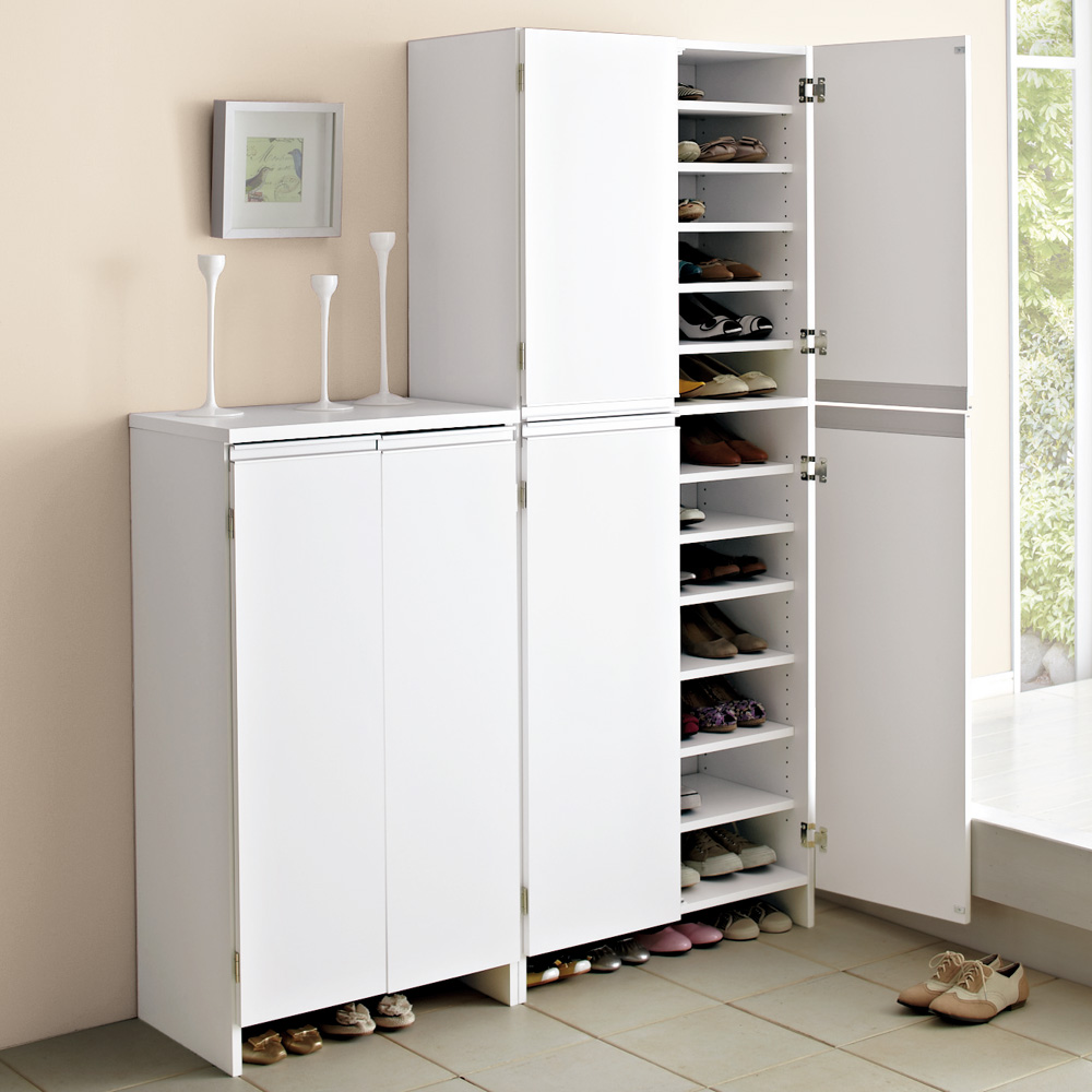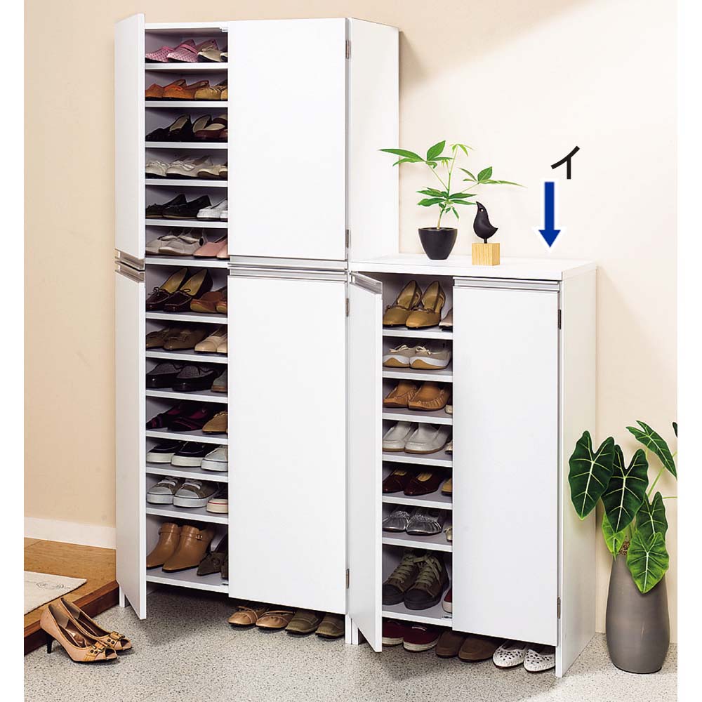 ◎同シリーズのハイタイプを組み合わせれば、大容量の玄関収納シューズ棚が実現します。