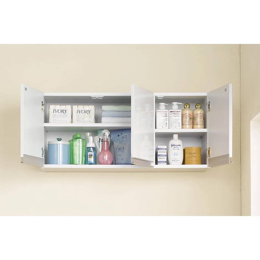 光沢仕上げ吊り戸棚 横型扉タイプ 幅120cm高さ40cm 洗面所収納 隙間収納 トイレ 洗面所 ランドリー収納 631203