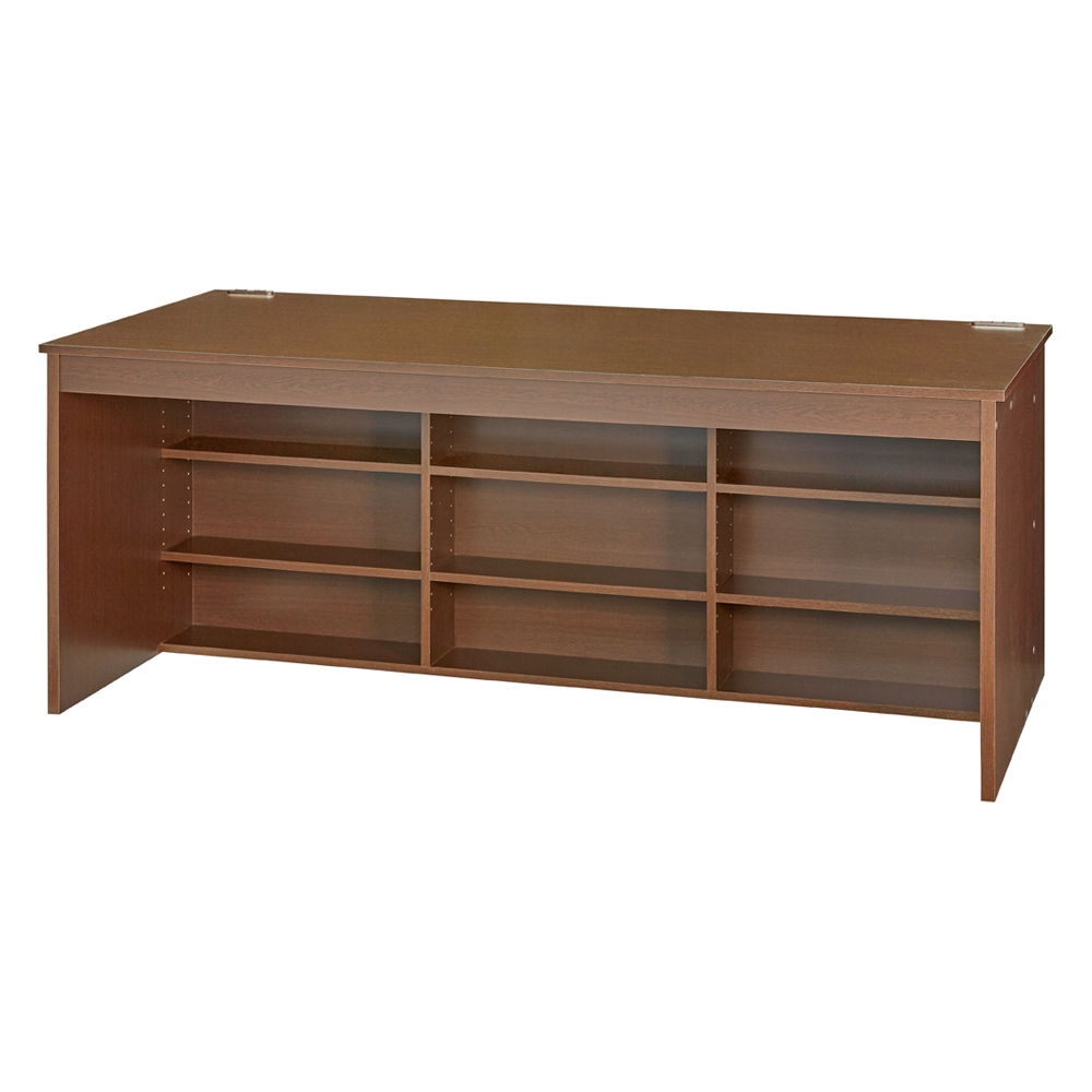 ◆本体は裏面化粧で、社長室のような間仕切的な使い方も可能。◆本体天板の芯材にはLVL合板(平行合板)と幕板を2枚採用、これにより耐荷重も50kgで大変頑丈です。