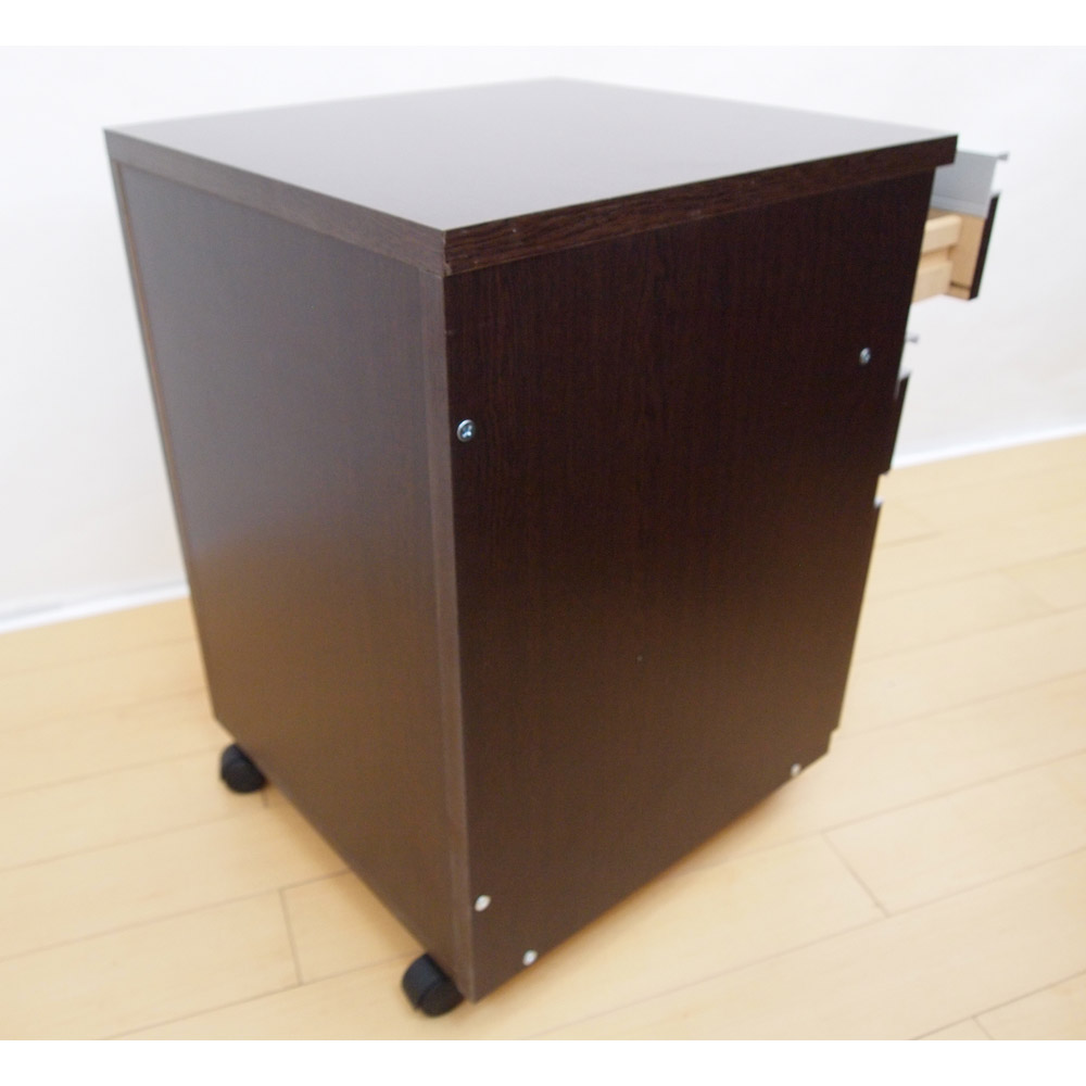 (イ)ダークブラウン チェスト、ラックともデスク下にすっきり収納。
