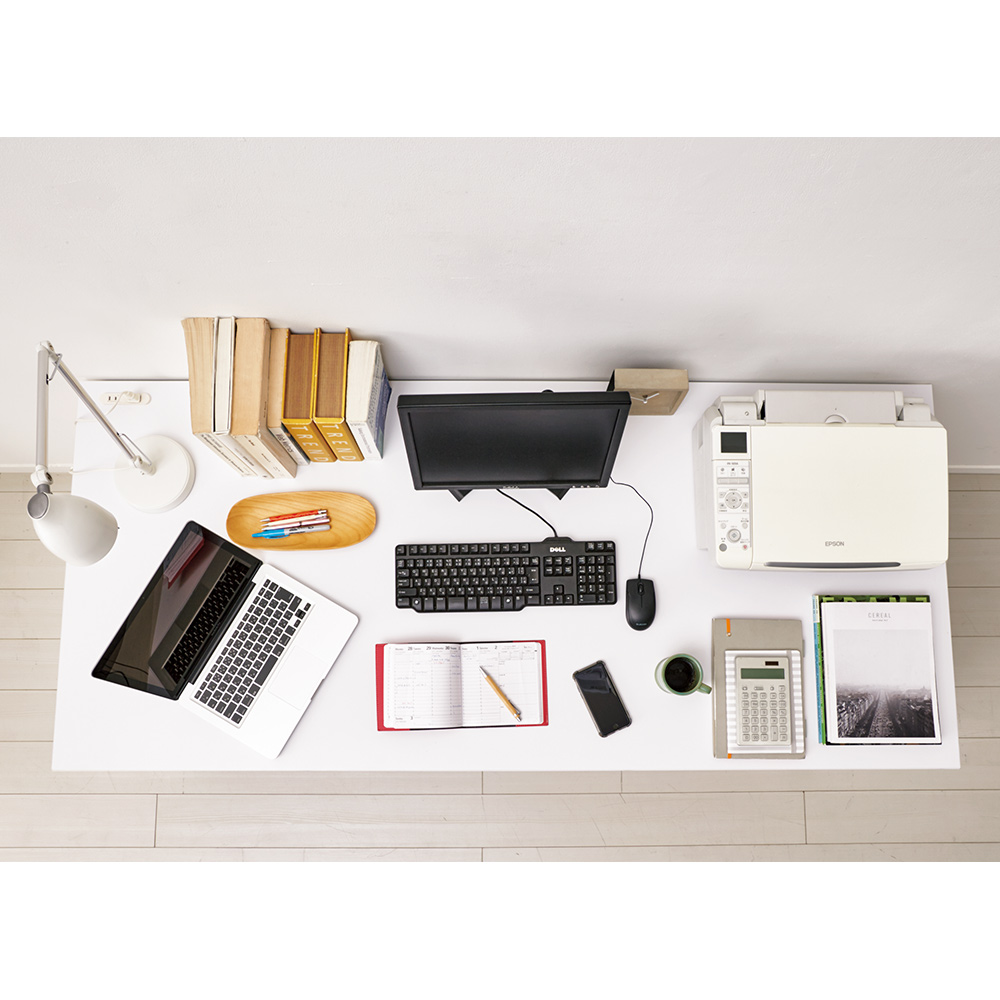 奥行がたっぷりなので、プリンターなどを置いても作業スペースが広々。天板耐荷重も約50kgと頑丈です。