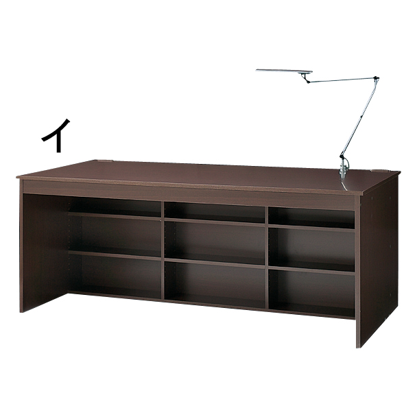 (イ)ダークブラウン 照明(デスクライト)のクランプも取り付けられます。(こちらのデスク幅180にラック・チェストが付属します)