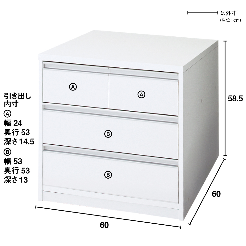■サイズ:幅60奥行60高さ58.5cm、重量約23kg、引き出し内寸…(小)幅24.5奥行53高さ14.5cm、(大)幅53奥行53高さ13cm