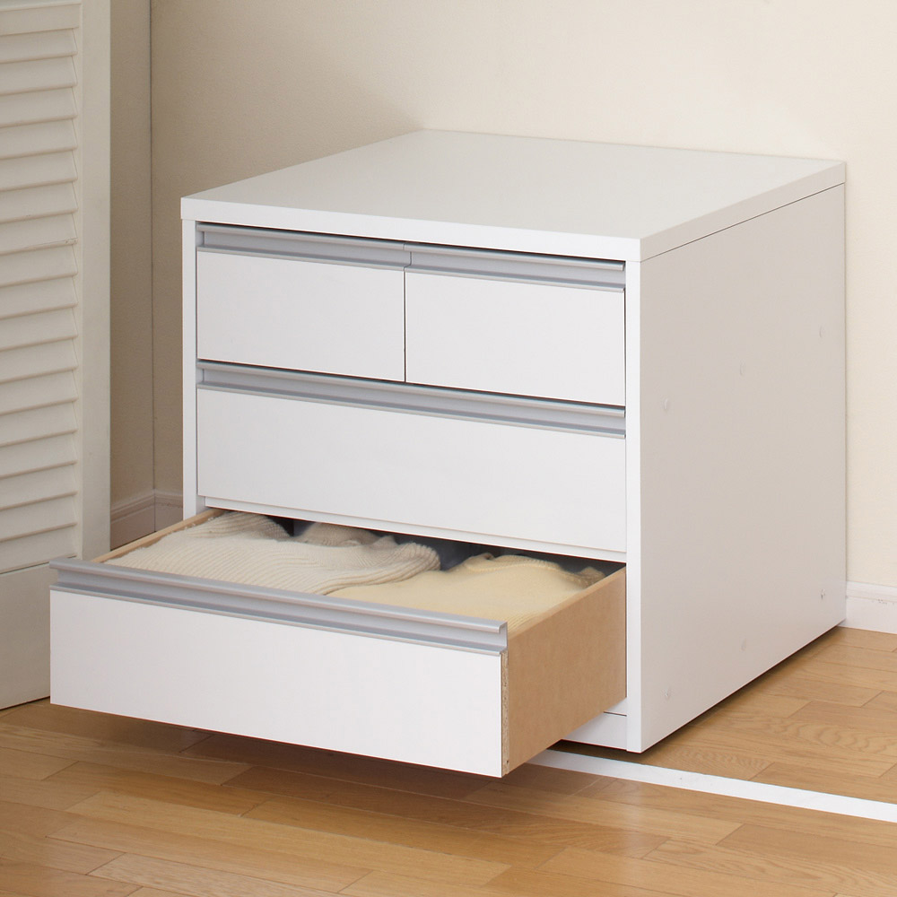 前面・天板の光沢感が美しい、隠しキャスター付きクローゼットチェスト。