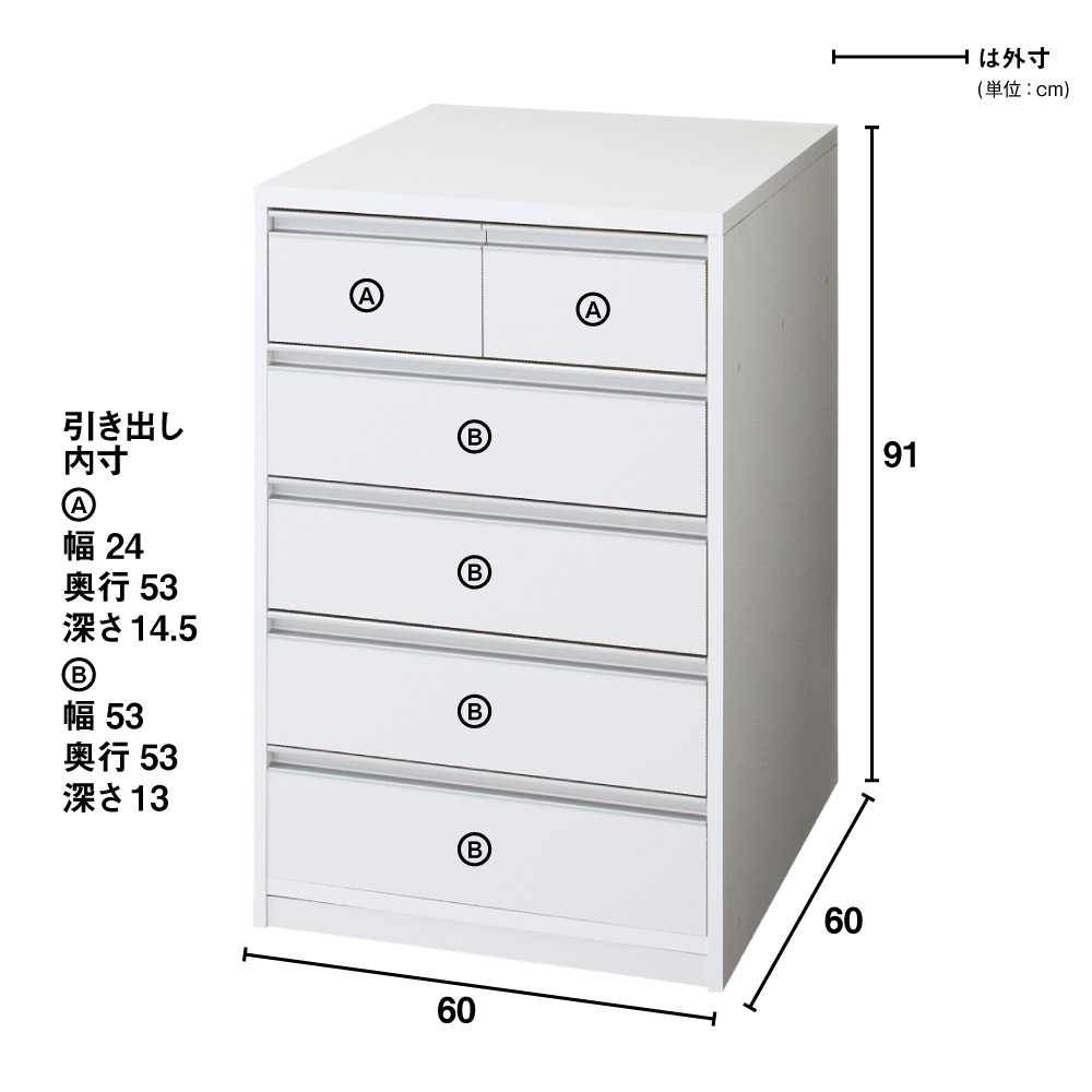 ■サイズ:幅60奥行60高さ91cm、重量約35kg、引き出し内寸…(小)幅24.5奥行53高さ14.5cm、(大)幅53奥行53高さ13cm