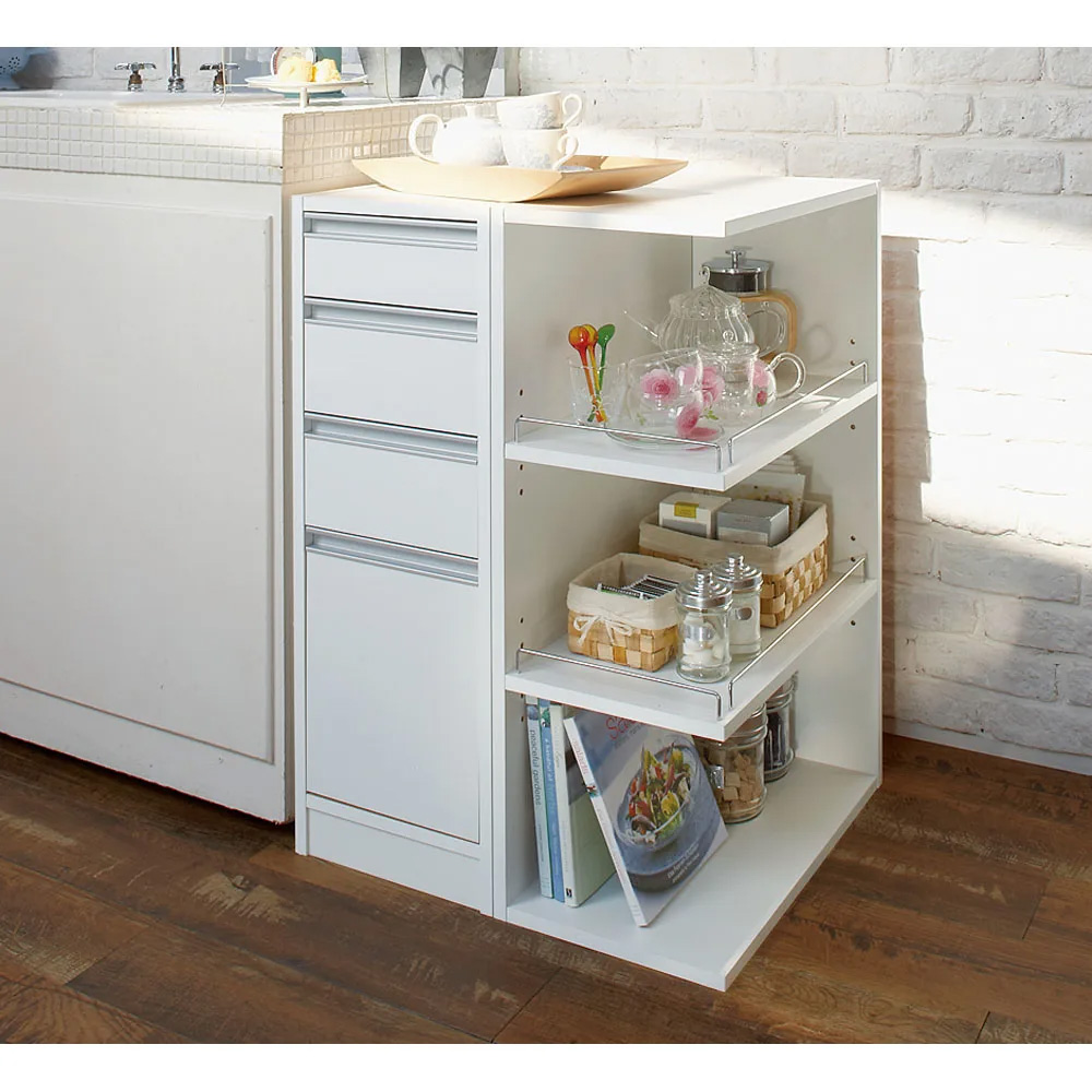 ◆上下連結式なので棚と引き出しを左右に並べてキッチンカウンターとしてもお使い頂けます。