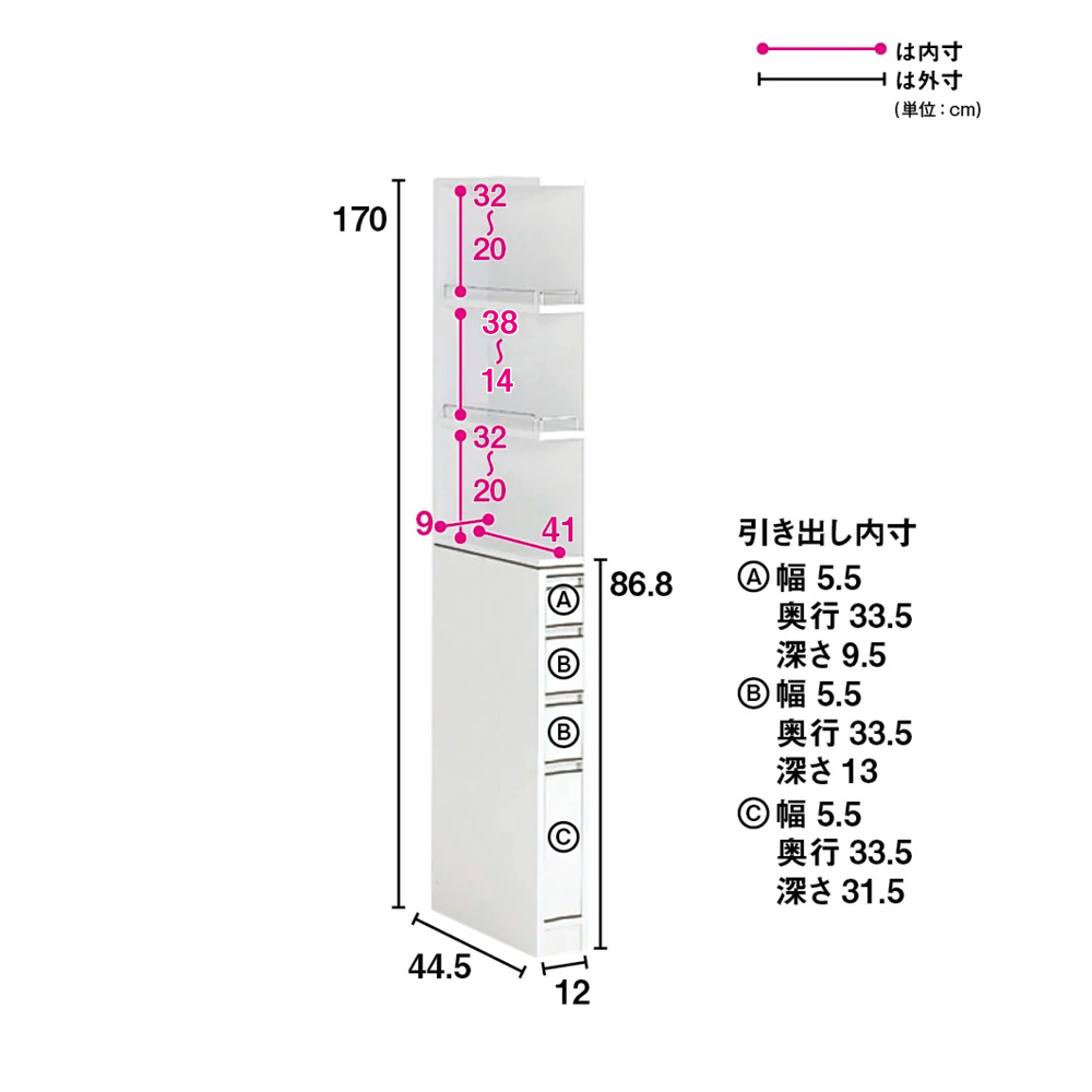 ■サイズ:幅12奥行44.5高さ170引き出し奥行33.5cm・重さ約20kg