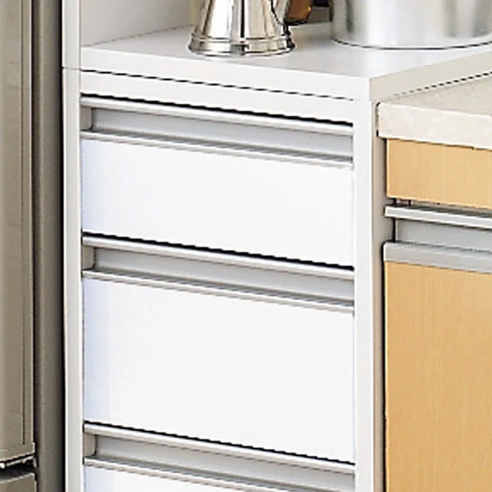 (ア)ホワイト 使いやすい上段オープンタイプでキッチンの隙間をフル活用。 下段のチェストもキッチン周りの整理に便利です。 ※写真は幅30奥行55cmタイプです。