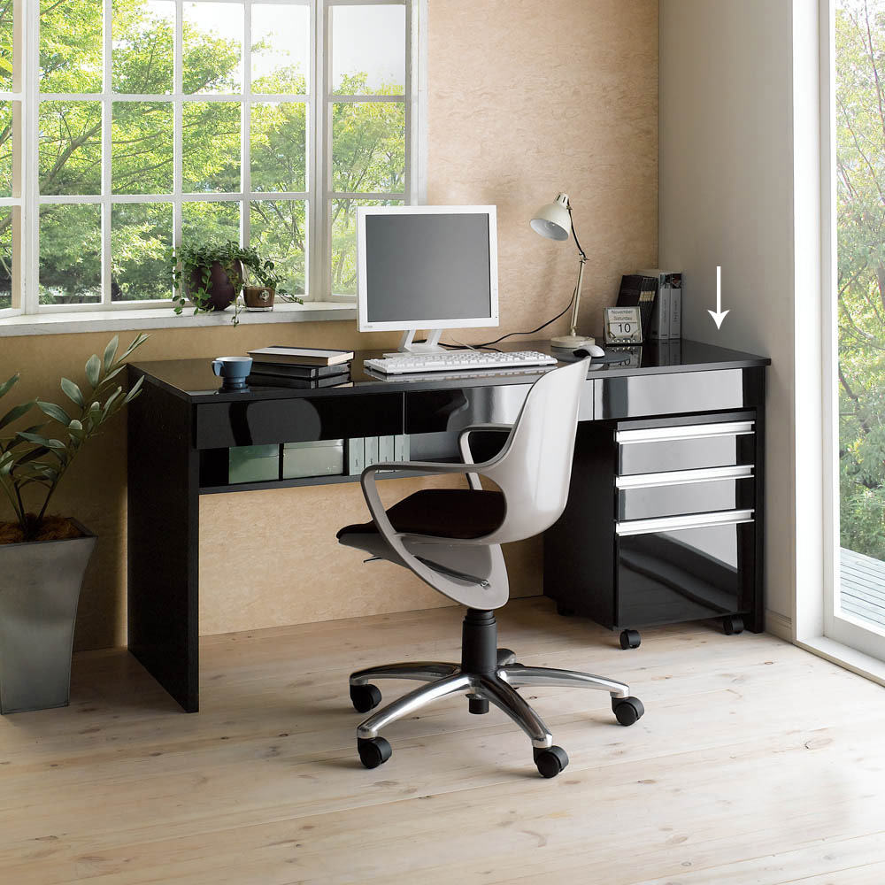 ◆洗練された都会的でモダンな印象のデスクシリーズ。◆美しさは強さに!光沢感のある仕上がりは、水や汚れに強い証。