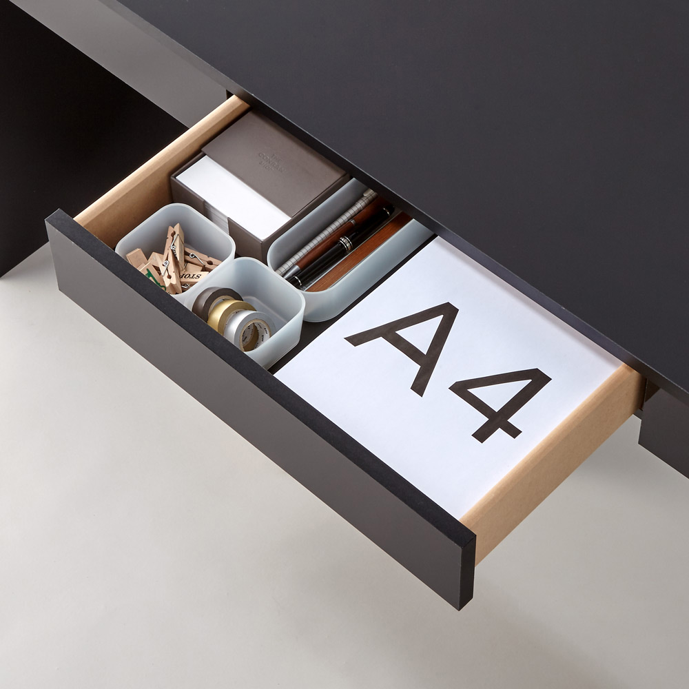 ◆汚れを寄せ付けない印象の光沢感と細かい配慮がお薦めのデスクシリーズです。