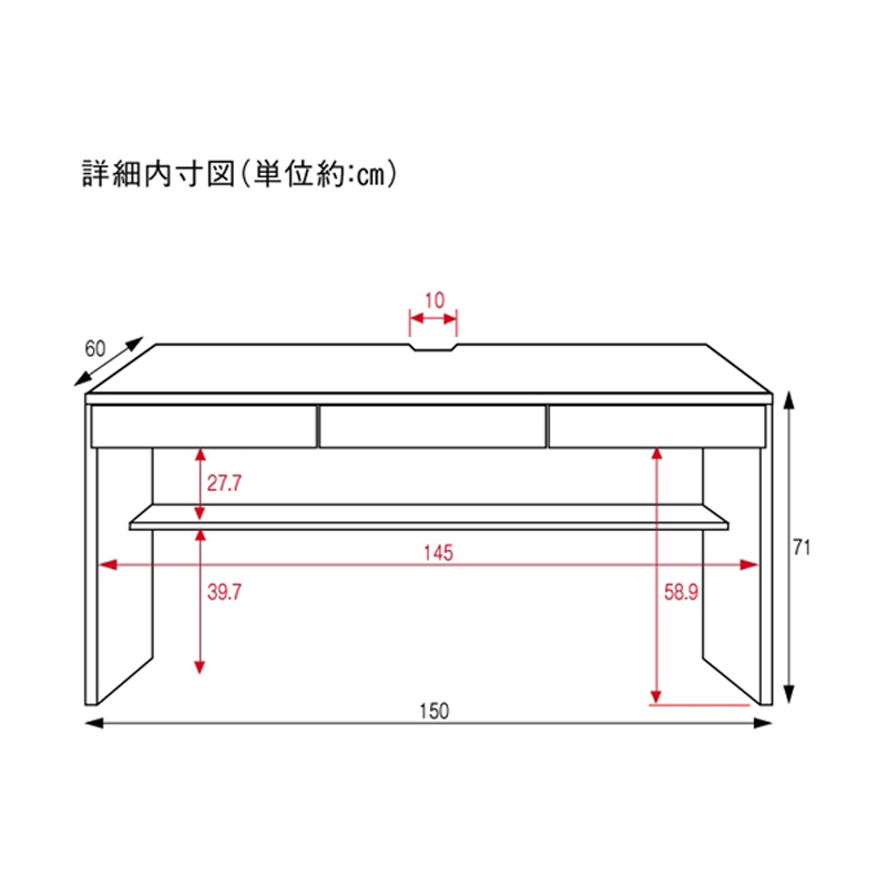 引き出し内寸:幅44cm 奥行33.7cm 高さ6cm