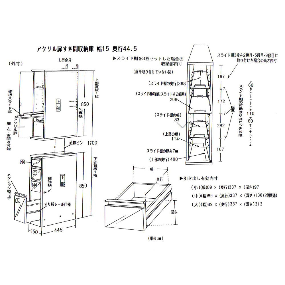 ■幅15奥行44.5(引出奥行33.5)高さ170cm・重量約18kg