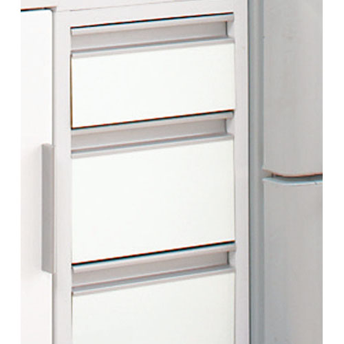 細かいものも収納しやすい引き出しタイプ。 取っ手も出っ張りがないので狭いキッチンでは便利です。