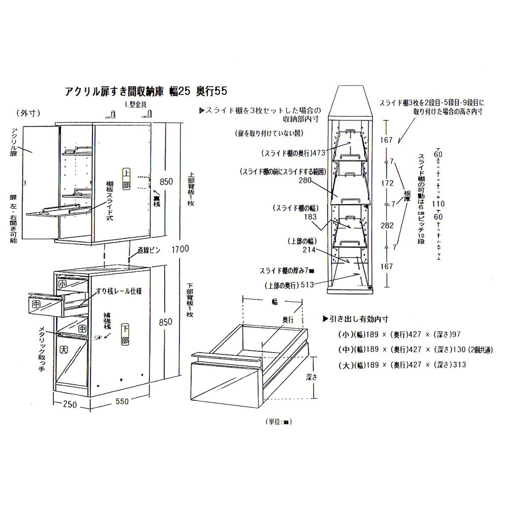 ■幅25奥行55(引出奥行42.5)高さ170cm・重量約24kg
