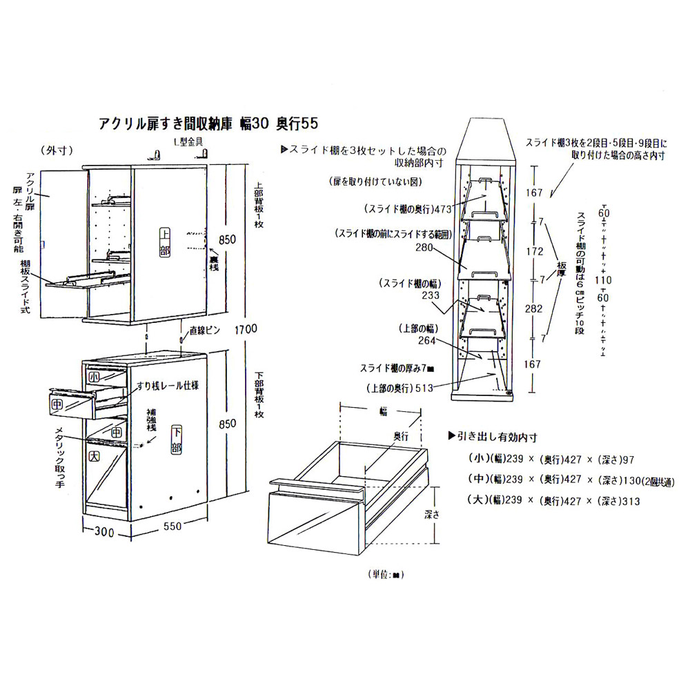 ■幅30奥行55(引出奥行42.5)高さ170cm・重量約26kg