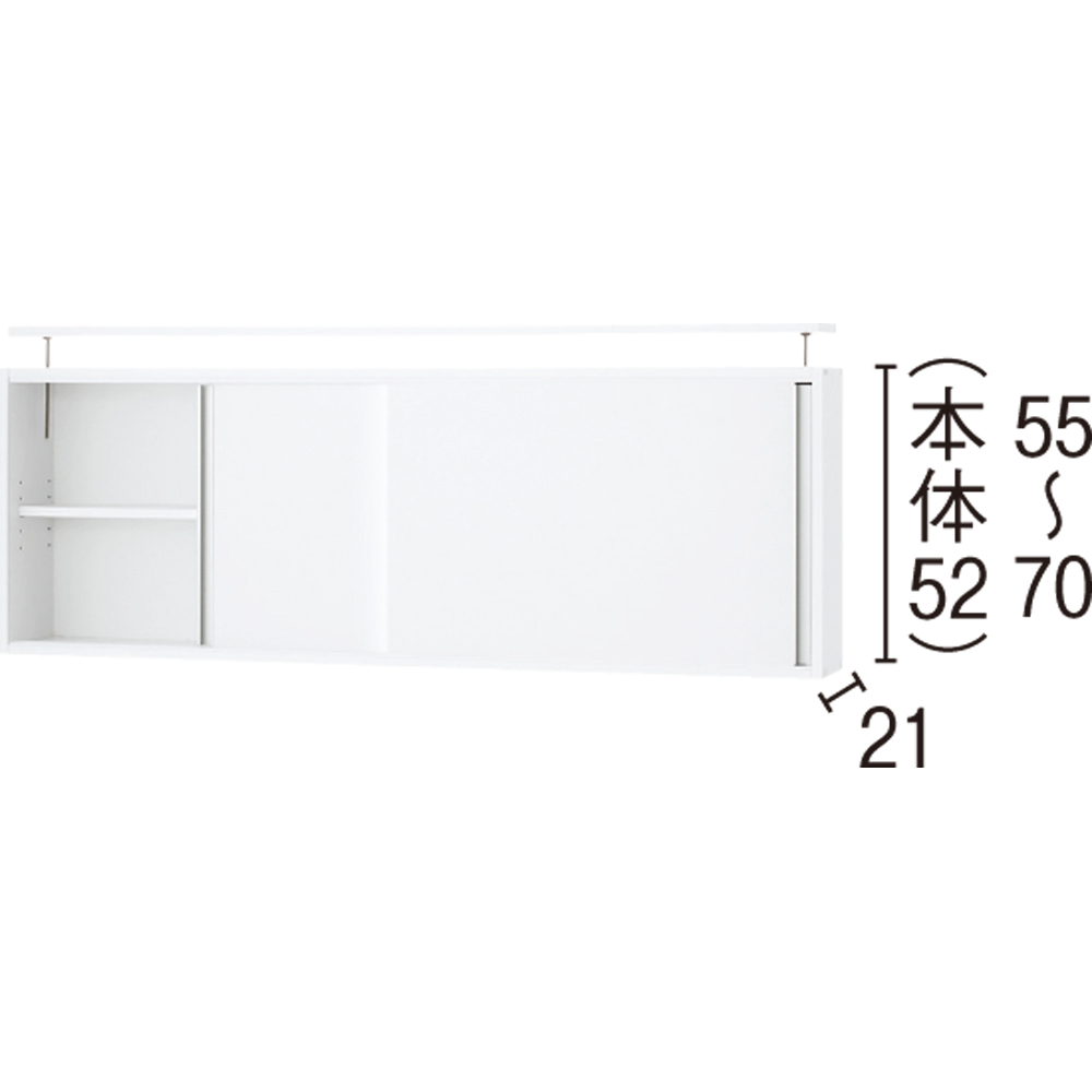 光沢仕様 引き戸壁面収納本棚 幅150奥行21突っ張り上置き高さ55-70(本体52)cm CD DVDラック 本棚 ラック シェルフ 628029