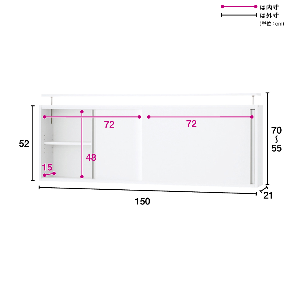 ■サイズ:幅150奥行21高さ55~70(本体52)・重さ19kg