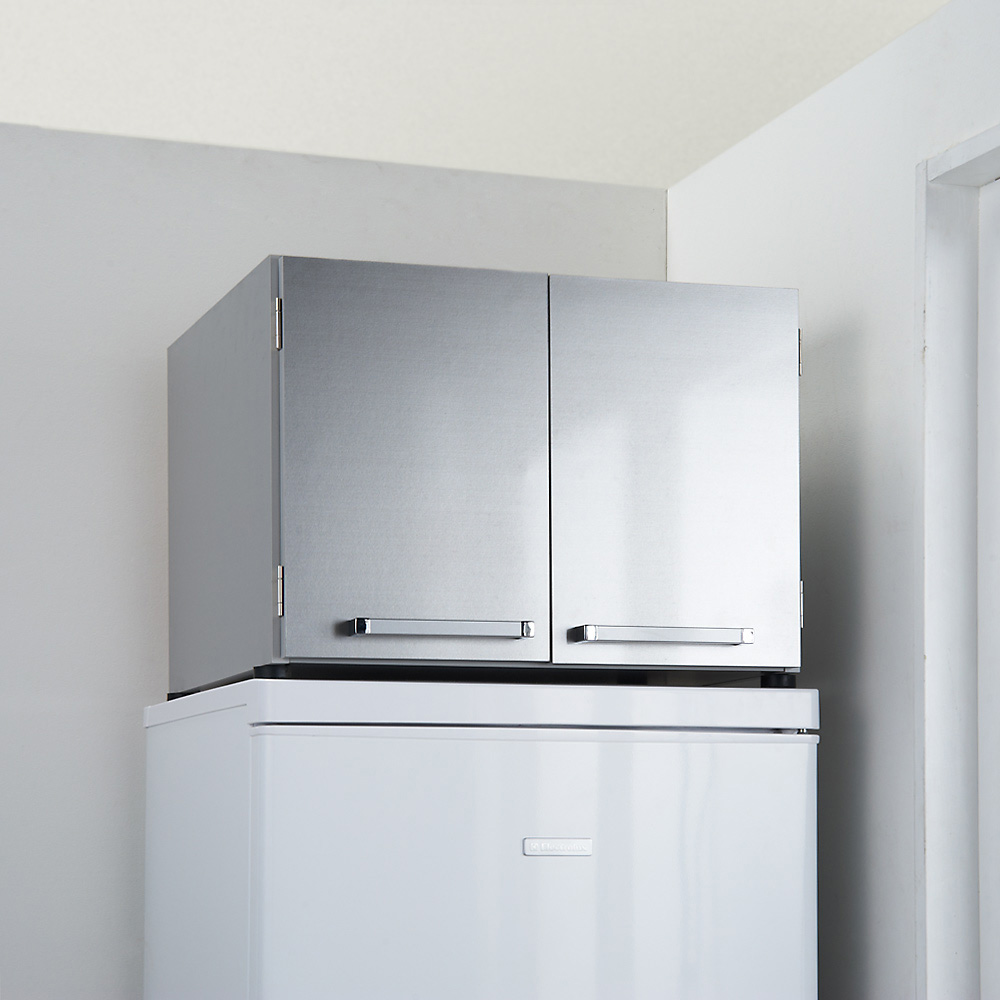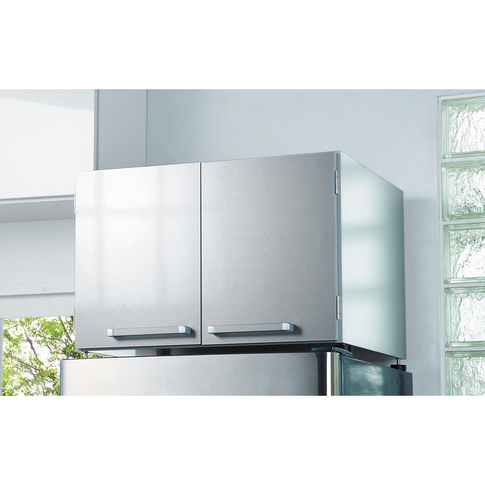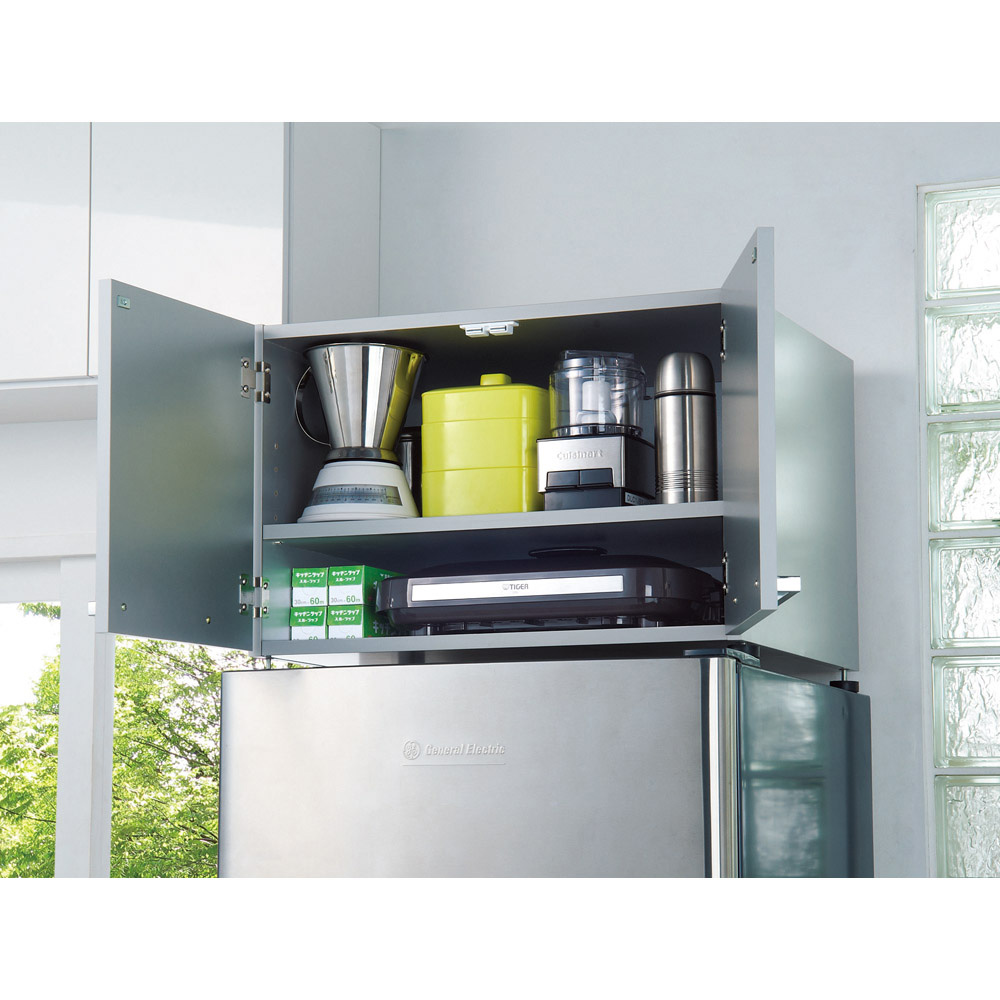 前面から側面、天板までお手入れが簡単な素材を使用。シルバーとホワイトの2色から選べ、冷蔵庫との統一感も◎。キッチンの美観を損ねることなく、便利な収納スペースが手に入ります。
