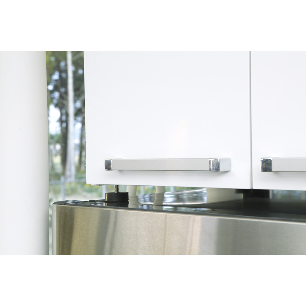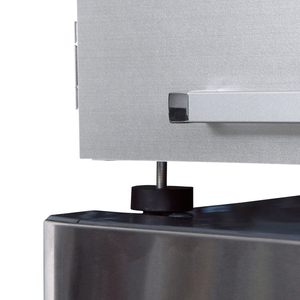 冷蔵庫の放熱を考慮し、安定した設置を実現するために、脚部には約2cmの高さ調節が可能なアジャスターを搭載しています。これにより、冷蔵庫と接する部分の通気を確保し、長期使用でも安心してお使いいただけます。