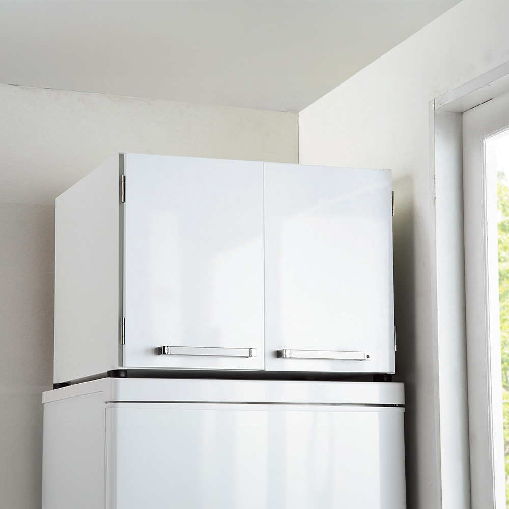 冷蔵庫の上を利用して収納スペースを作れる冷蔵庫上ラック!高価な備え付け家具や大掛かりなリフォームに比べてリーズナブルに、利用しにくいスペースを有効活用できます。