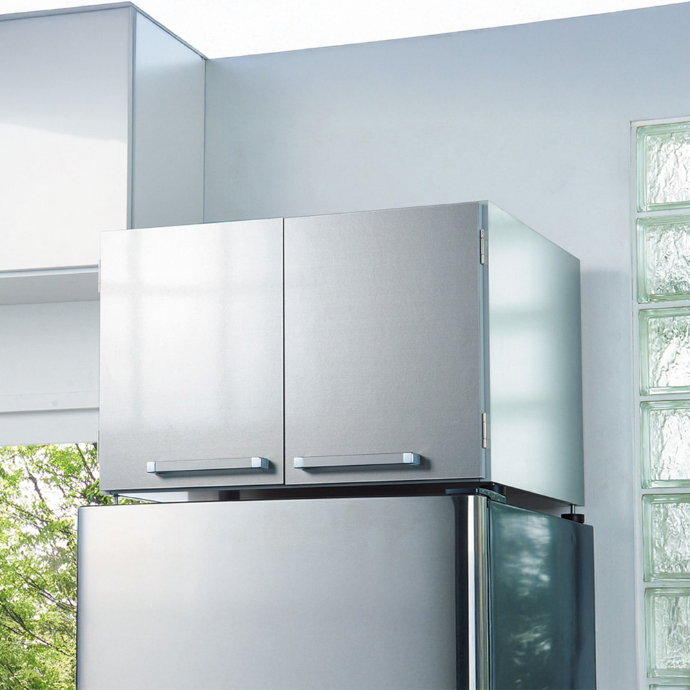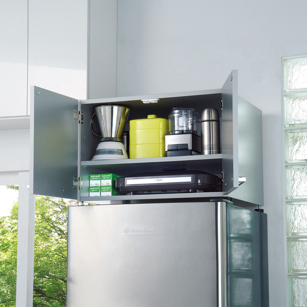 前面から側面、天板までお手入れが簡単な素材を使用。シルバーとホワイトの2色から選べ、冷蔵庫との統一感も◎。キッチンの美観を損ねることなく、便利な収納スペースが手に入ります。