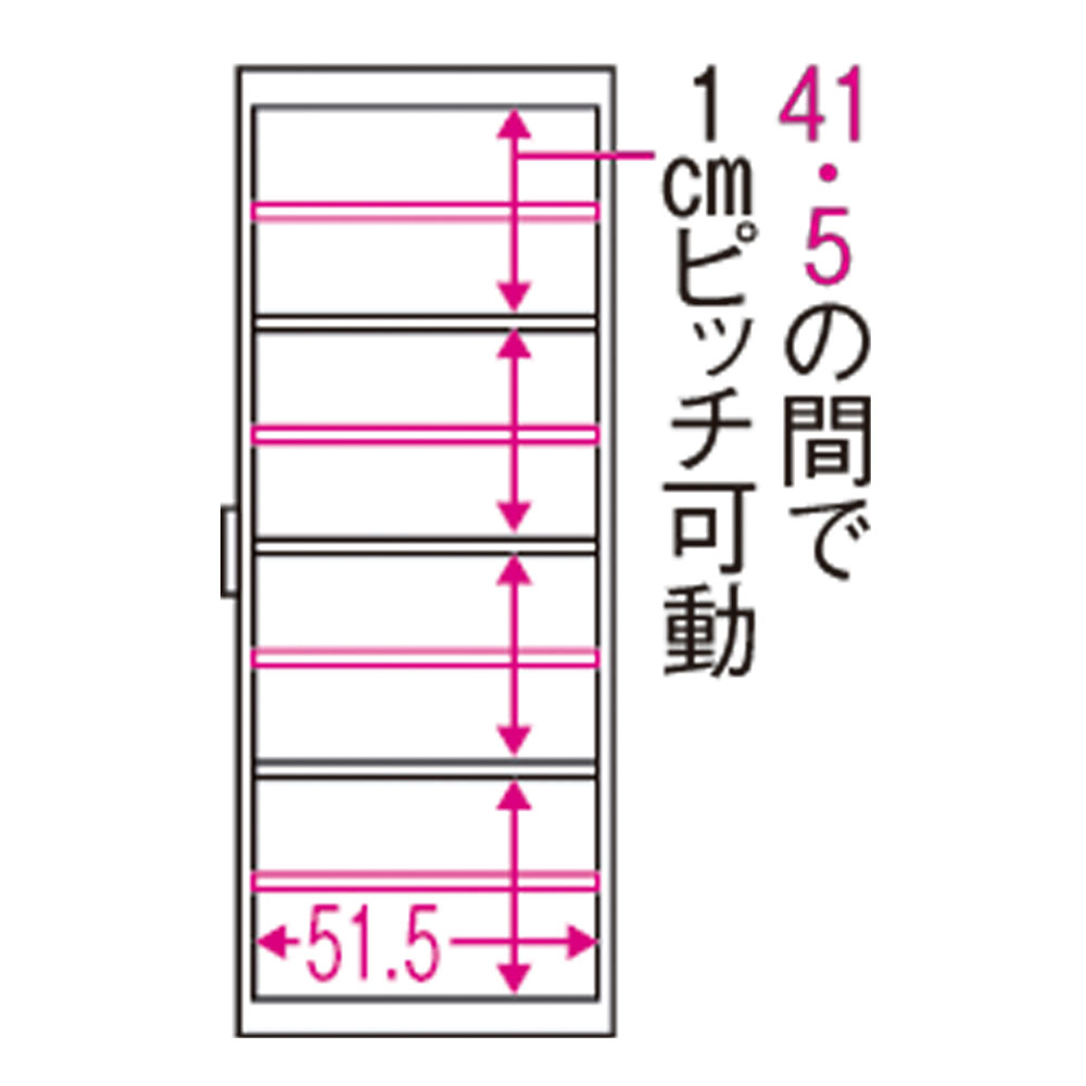 ◆1cm間隔で収納物の高さに応じて細かく可動収納棚板を設定可能。