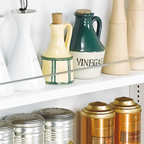 ◆小さいな物の収納でも棚からこぼれ落ちないように、こぼれ止めバーを採用。