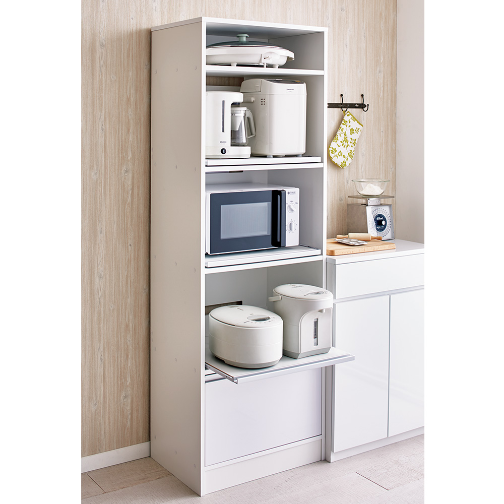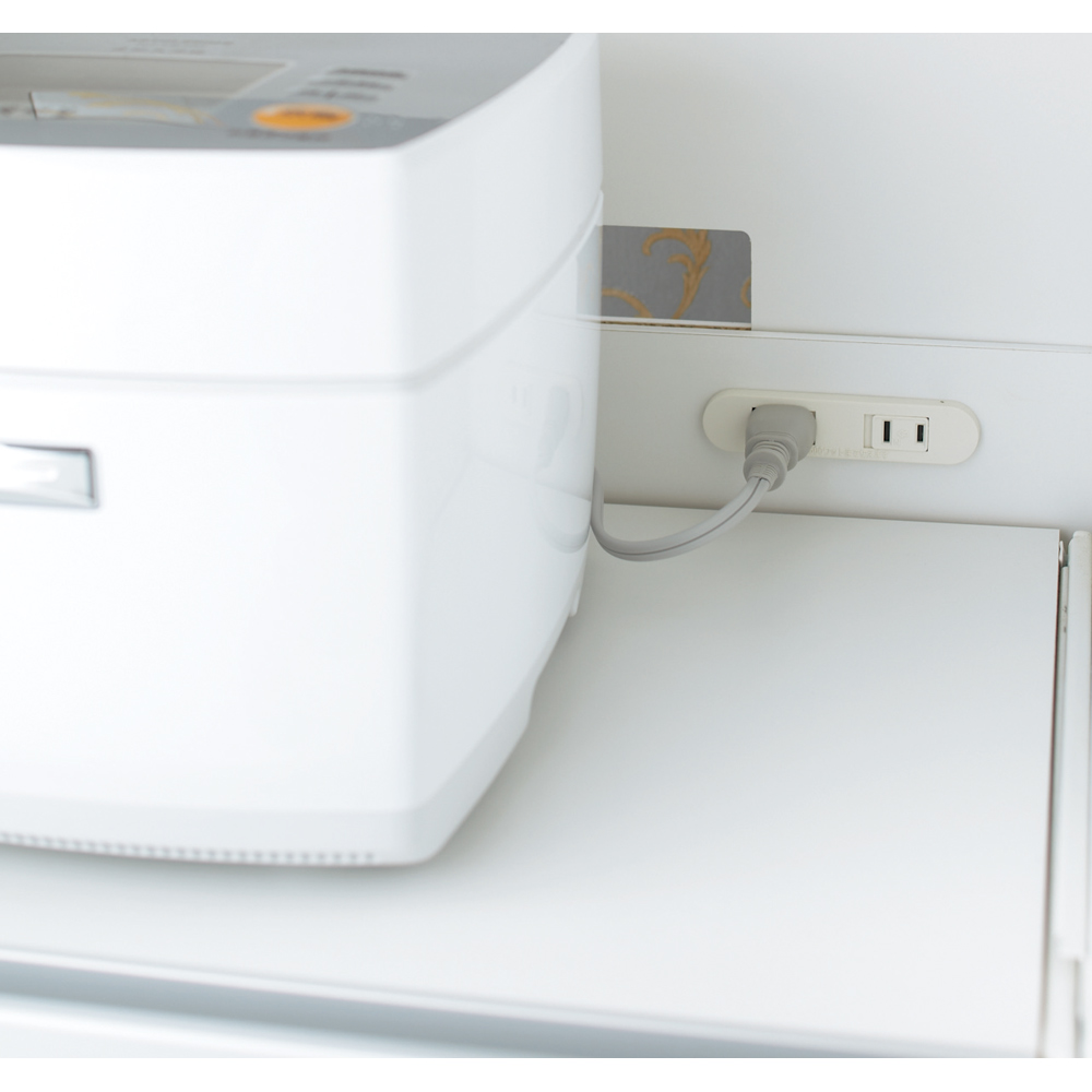 3段のスライドテーブルを装備。炊飯器やポット、電気ケトルなど蒸気の出る家電もテーブルをサッと引き出して手軽に使えます。