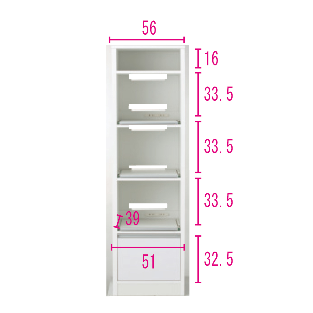 ■固定棚板サイズ・耐荷重:幅56cm奥行42cm厚さ1.8cm・耐荷重量約10kg