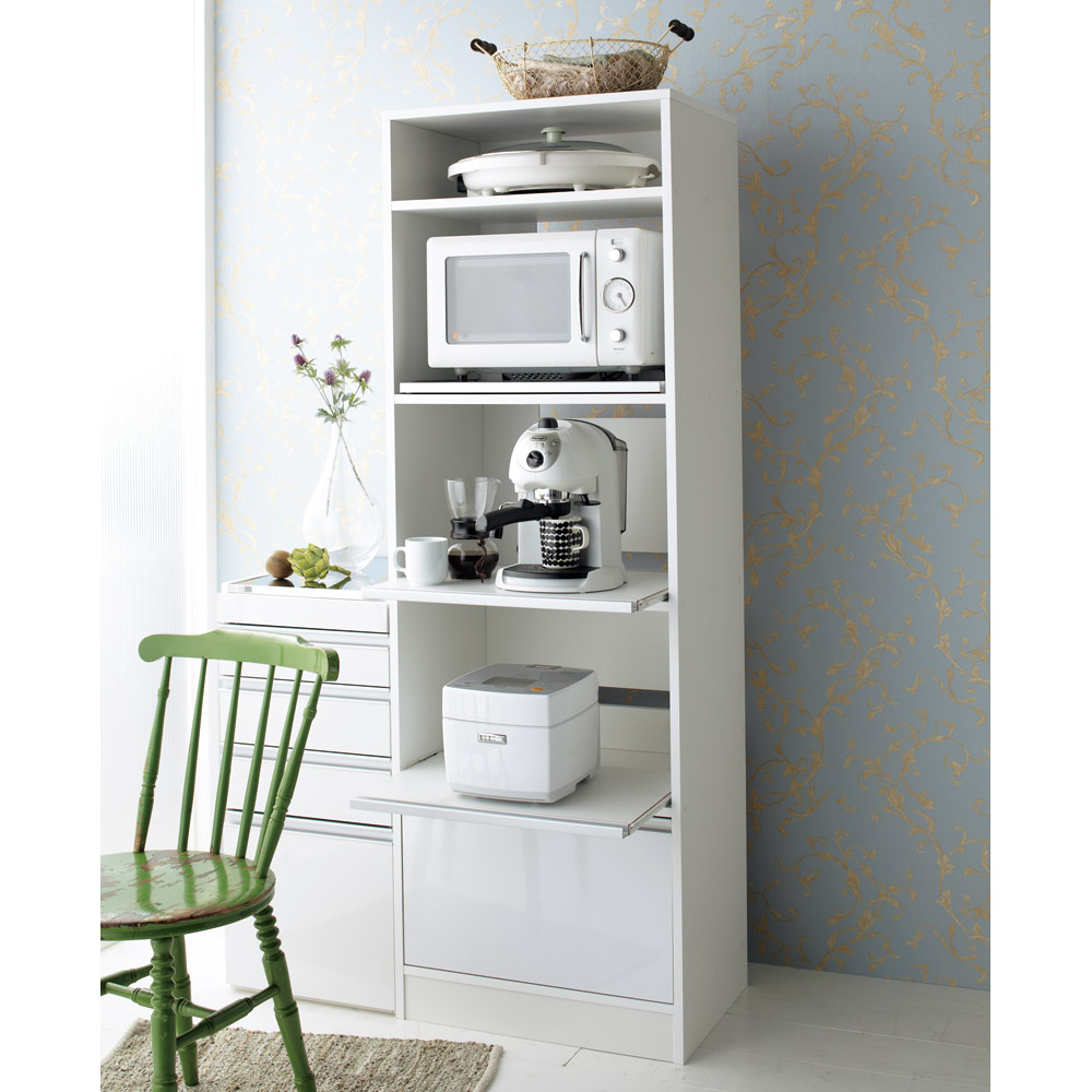 ◆電子レンジ、炊飯器、オーブン、ホットプレート、コーヒーメーカーなどよく使う家電のキッチン収納家具が誕生しました。◆手前に引き出せるスライドテーブルをなんと3段も標準装備しました!蒸気の出る家電に便利です。