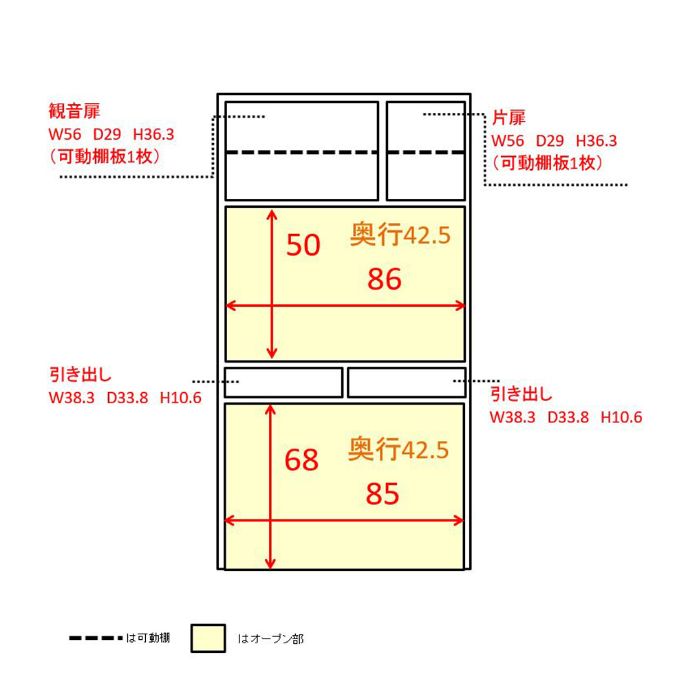 2口コンセント(計1500W)1ヵ所付きなので家電収納としてお使いいただけます。