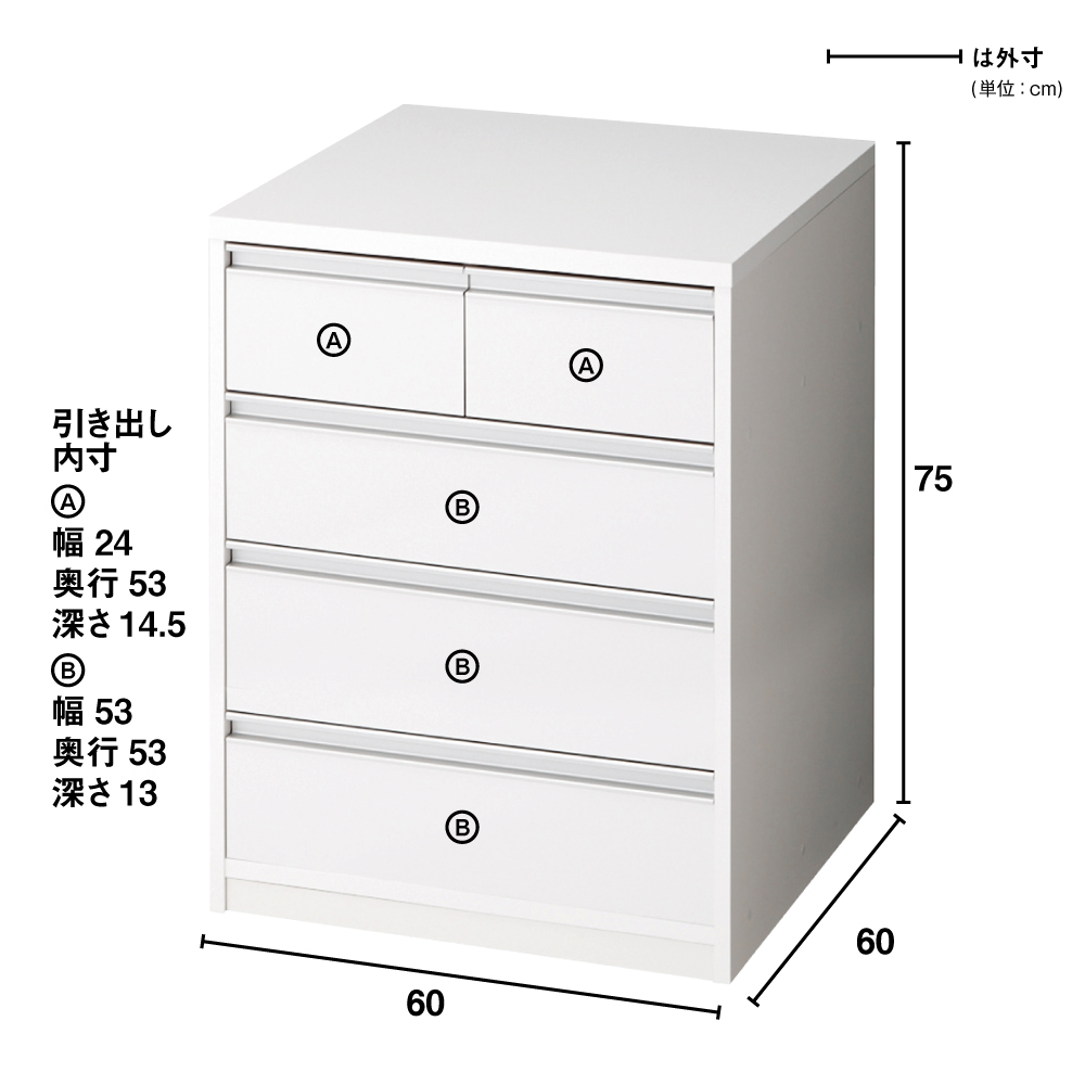 ■サイズ:幅60奥行60高さ75cm、重量約27kg、引き出し内寸…(小)幅24.5奥行53高さ14.5cm、(大)幅53奥行53高さ13cm