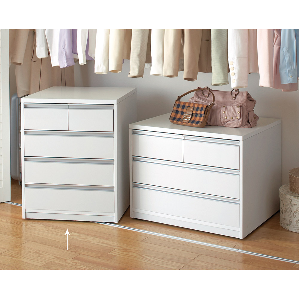 前面・天板の光沢感が美しい、隠しキャスター付きクローゼットチェスト。