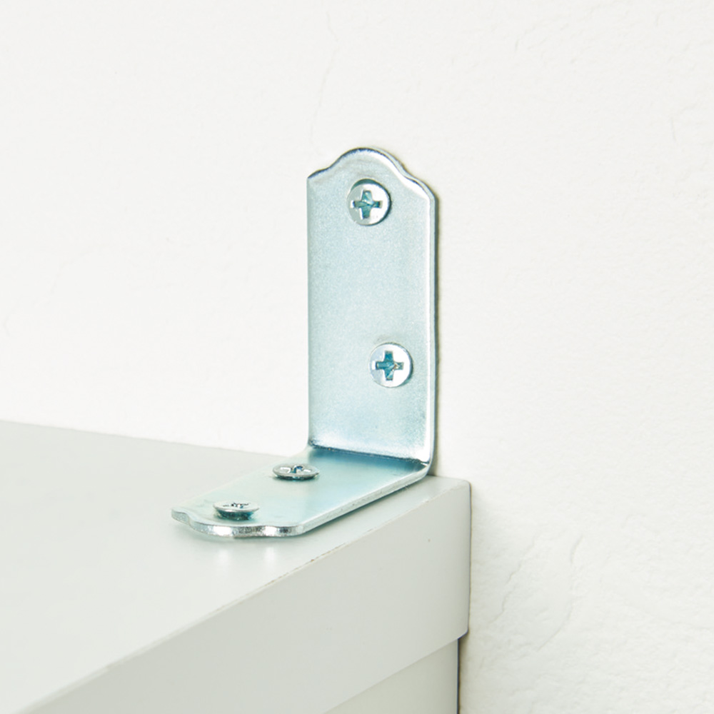 転倒防止用のL字金具で天板と壁を留めることも可能です。