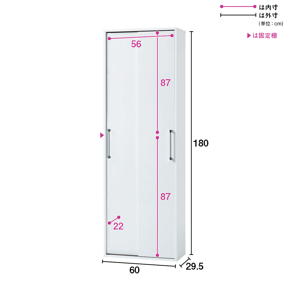 ■収納部内寸(固定棚上):幅56.2奥行22高さ87.3cm