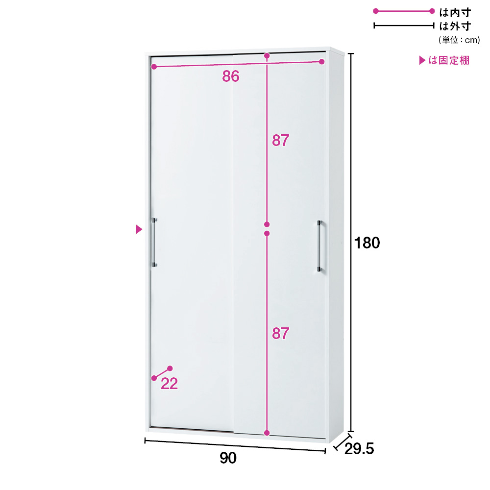 ■収納部内寸(固定棚下):幅86.2奥行22高さ87.3cm