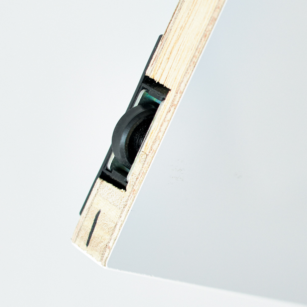 ホワイトの扉は水・汚れに強い素材スライド扉は光沢のあるポリエステル仕上げの板を使用。水に強く、お手入れも簡単なので、水まわりでも安心してご利用いただけます。