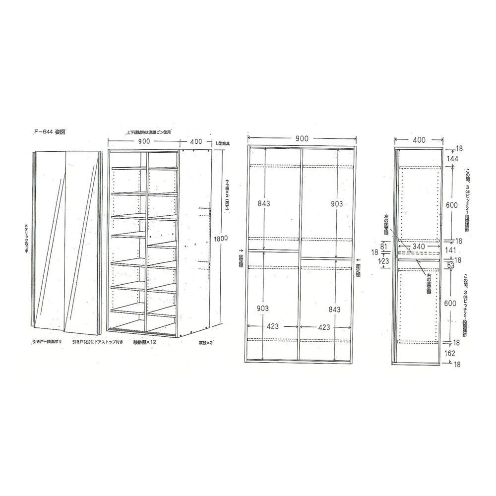 中央棚(左右1枚ずつ計2枚)は固定板です。その他左右6枚計12枚の棚板が可動します。