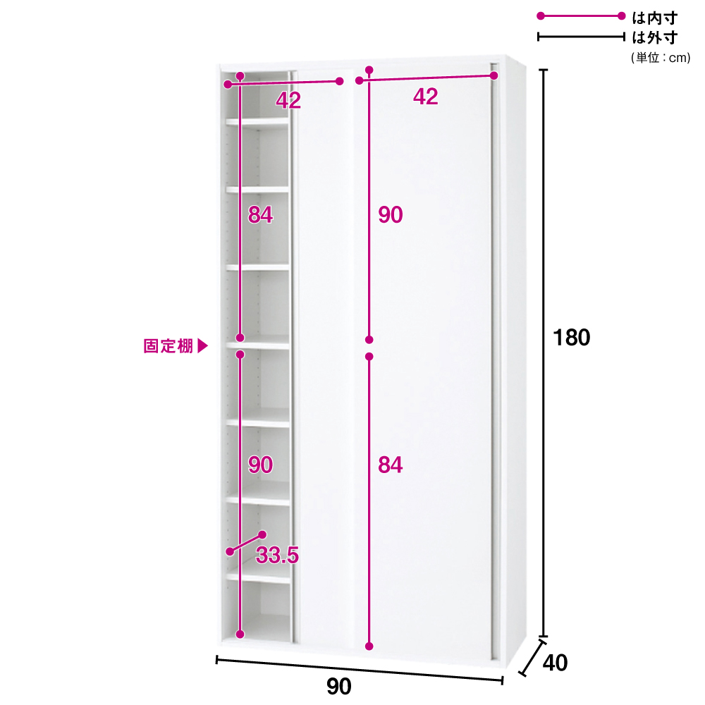 ■サイズ:幅90奥行40高さ180・重さ49kg、上置き設置時の天井対応高さ235~250cm