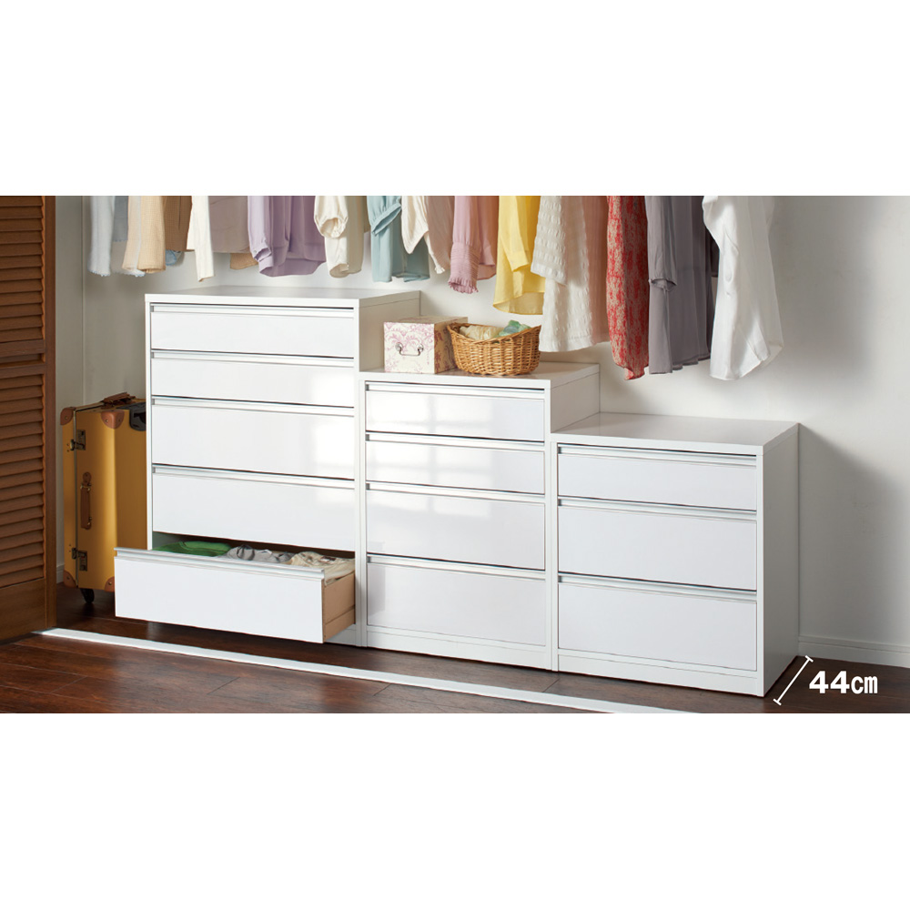 前面・天板の光沢感が美しい、隠しキャスター付きクローゼットチェスト。