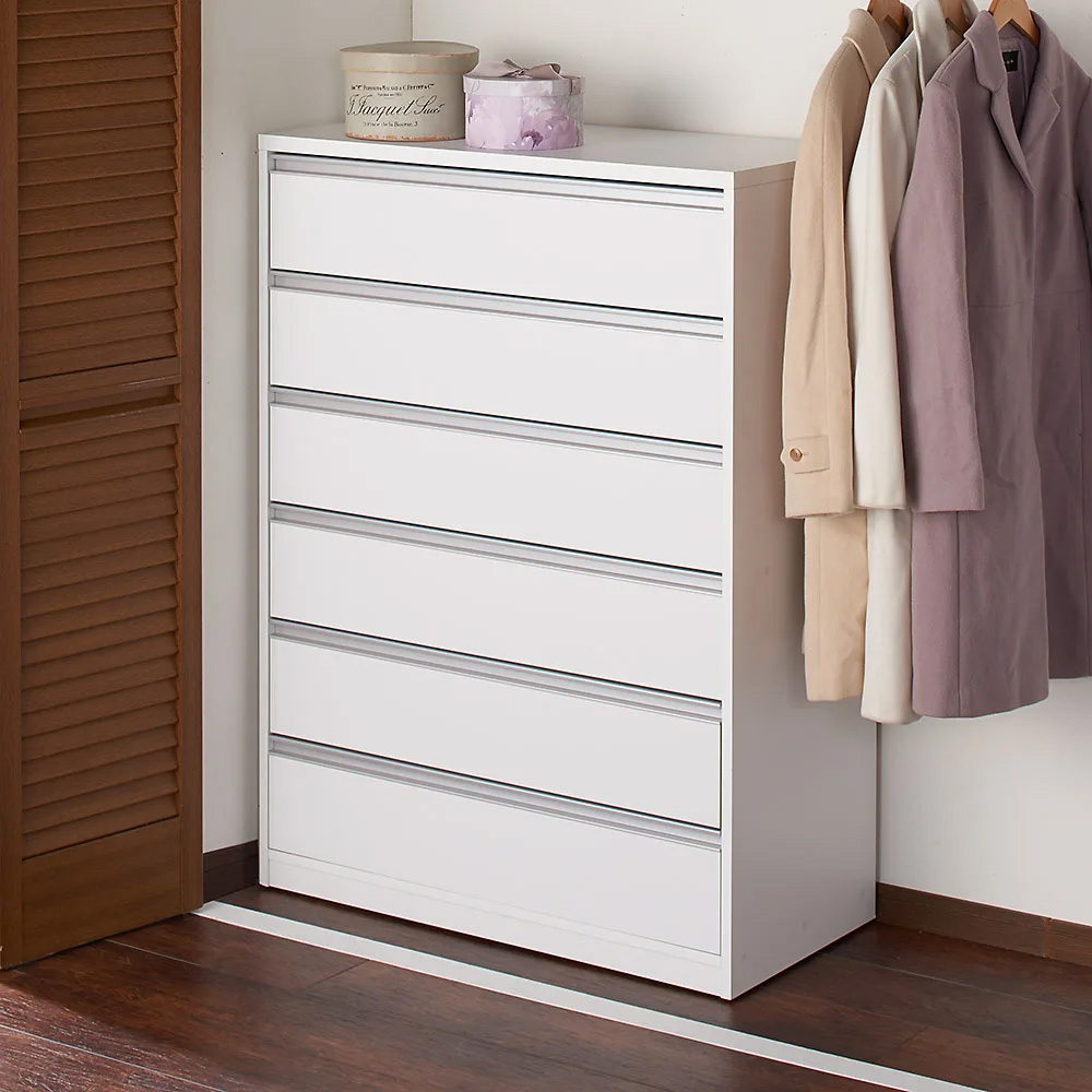 気軽に動かせる隠しキャスター付きワイドクローゼットチェスト 幅90cm・6段高さ124cm 押入れ クローゼット収納 衣類収納 590116