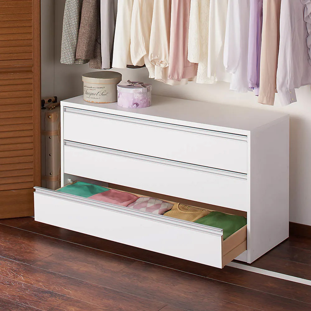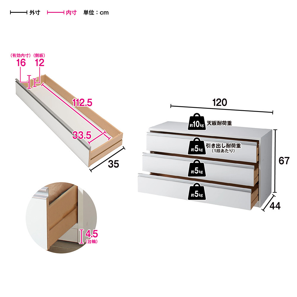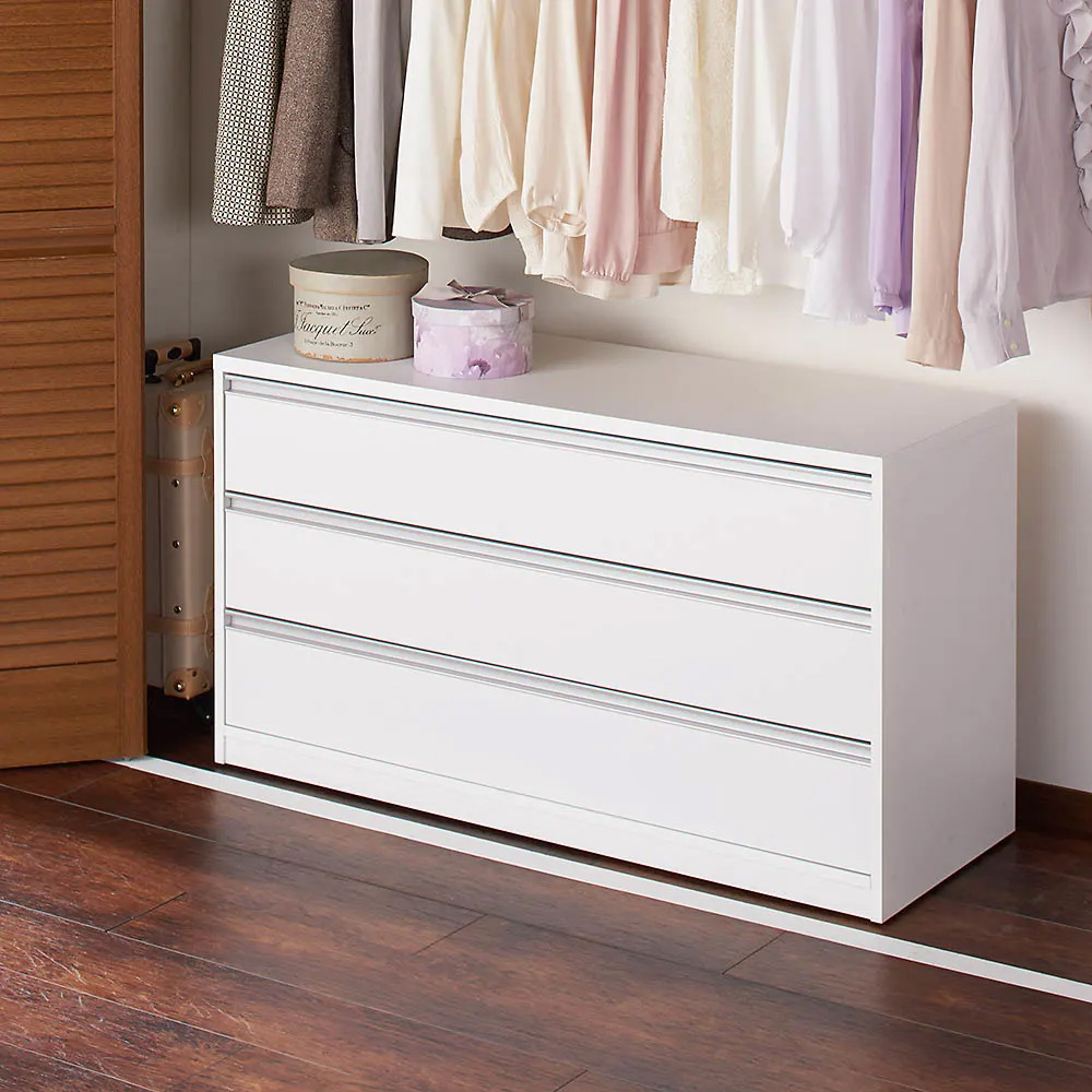 【ローチェスト】気軽に動かせる隠しキャスター付きワイドクローゼットチェスト 幅120cm・3段高さ67cm 押入れ クローゼット収納 衣類収納 590117