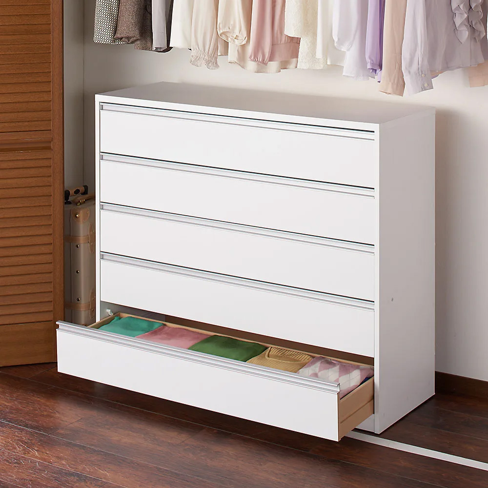 気軽に動かせる隠しキャスター付きワイドクローゼットチェスト 幅120cm・5段高さ105cm 押入れ クローゼット収納 衣類収納 590119